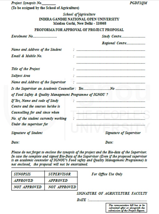 IGNOU PGDFSQM (MVPP-001) PROJECT SYNOPSIS