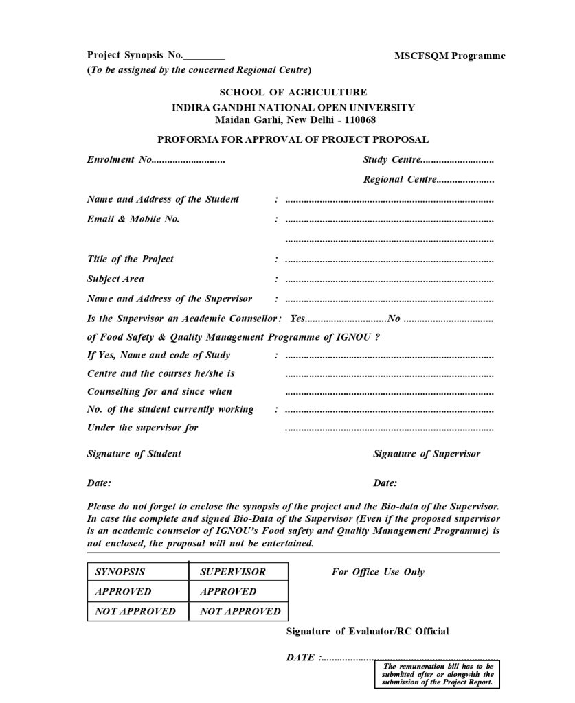 - Must be approved by the project supervisor and IGNOU’s programme coordinator.