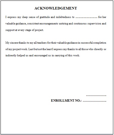 Cover Page – must have the Name and Enrolment No. of the Student and the Name of the Guide, along with the Title of the Project.